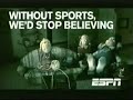 Description: ESPN commercial "Without sports, we'd stop believing." Claymation, or the digital equivalent. |